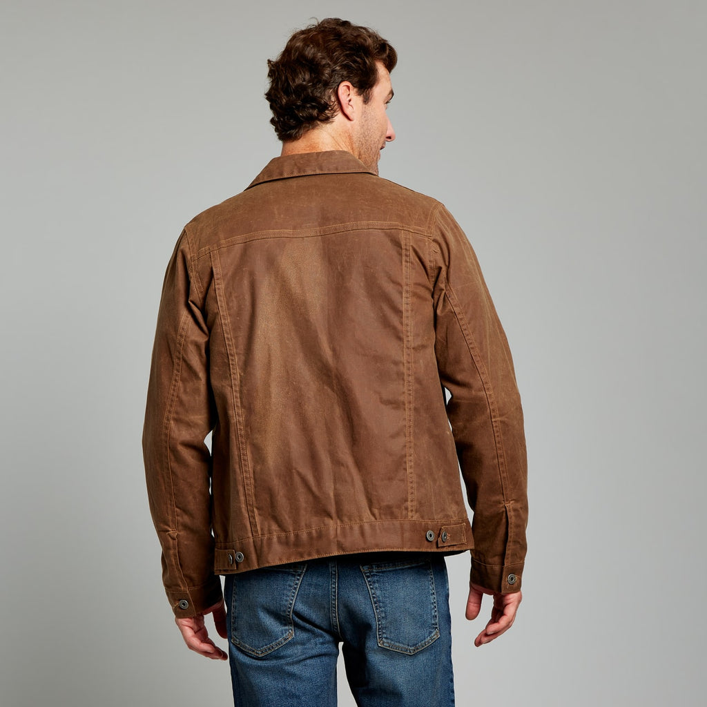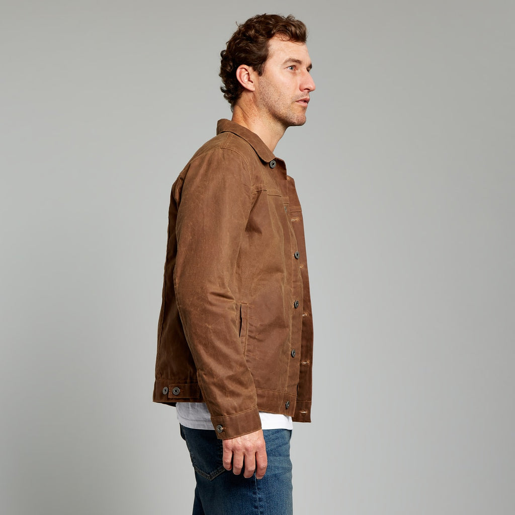 Tough, timeless, this top-seller is constructed with a waxed and weather-resistant Martexin 7 oz. sailcloth, which like selvage denim or finely tanned leather, will only get better with age. Every time you hoist a beer, tie your boots, or ride your bike, your movements will lighten the color of the waxed fabric in the creases and bends to create your own unique wear patterns. It's truly a thing of beauty, and why every guy needs a Waxed Trucker in their closet. For the price, you simply can't beat the quality, construction, and versatility of this bad boy.