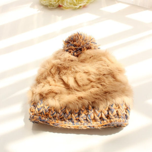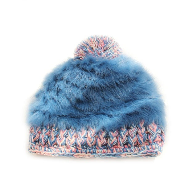 This multicolored knit and fur beanie will keep you warm on the slopes.